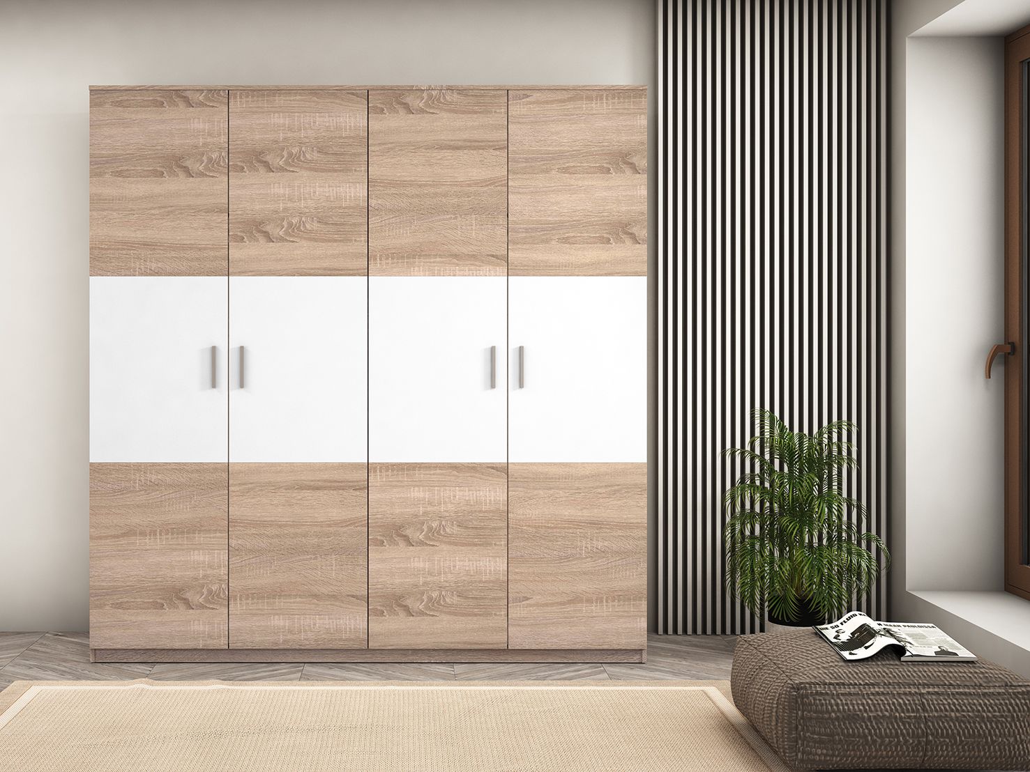El armario Monika combina estilo moderno y máxima funcionalidad para tu dormitorio. Con un diseño de seis puertas abatibles, este armario destaca por su acabado bicolor y sus líneas limpias, aportando elegancia y amplitud visual al espacio.