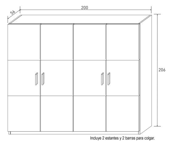📐 Medidas: 200 cm (ancho) x 206 cm (alto) x 56 cm (fondo).