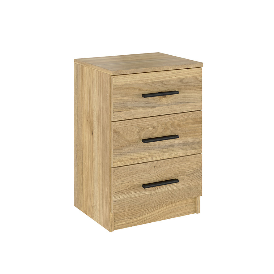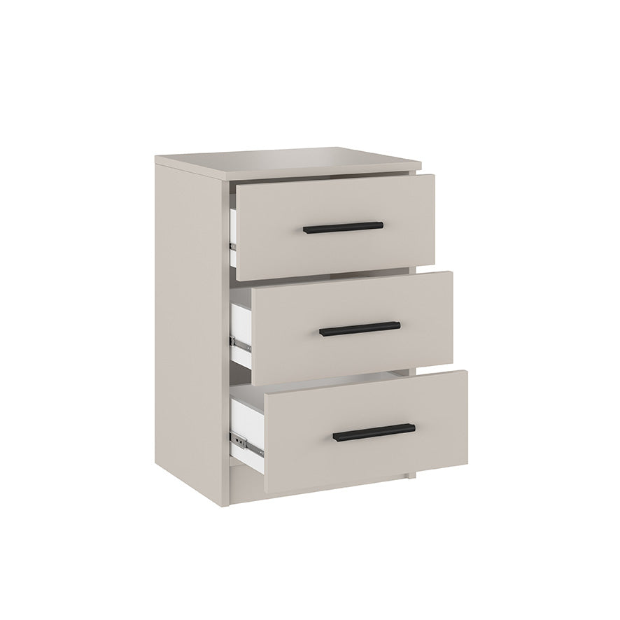 Fabricada en materiales de calidad, cuenta con 3 amplios cajones con tiradores rectos en color negro que aportan un toque contemporáneo y permiten mantener tu espacio siempre organizado.